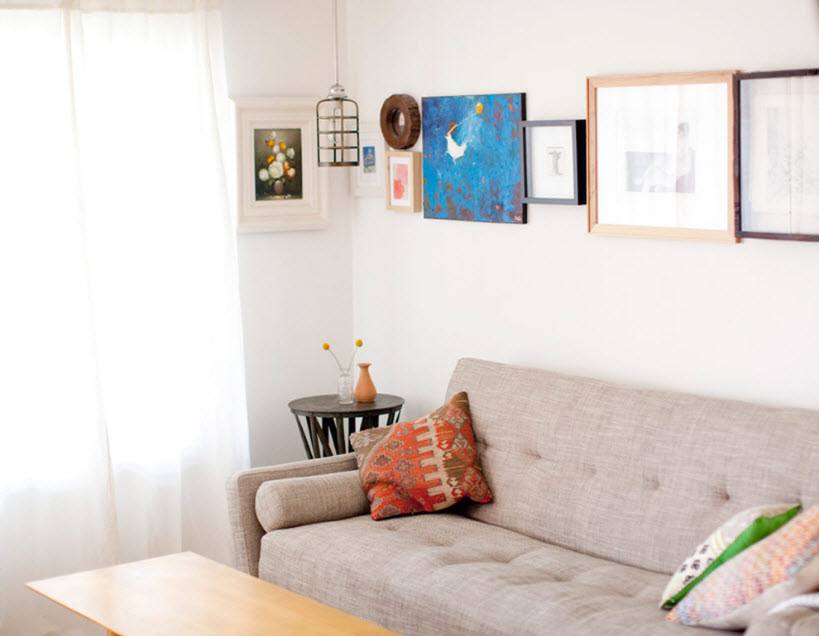 - размещать снимки лучше на уровне глаз. Фотоколлаж не должен быть у самого потолка или, наоборот, прилипать к полу.