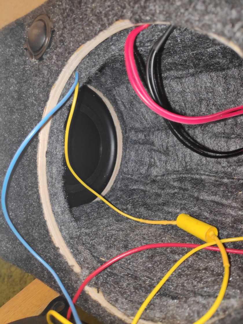 После крепления задней панели спаиваем провода динамиков с усилителем, проверим все на работоспособность Окончательная сборка.