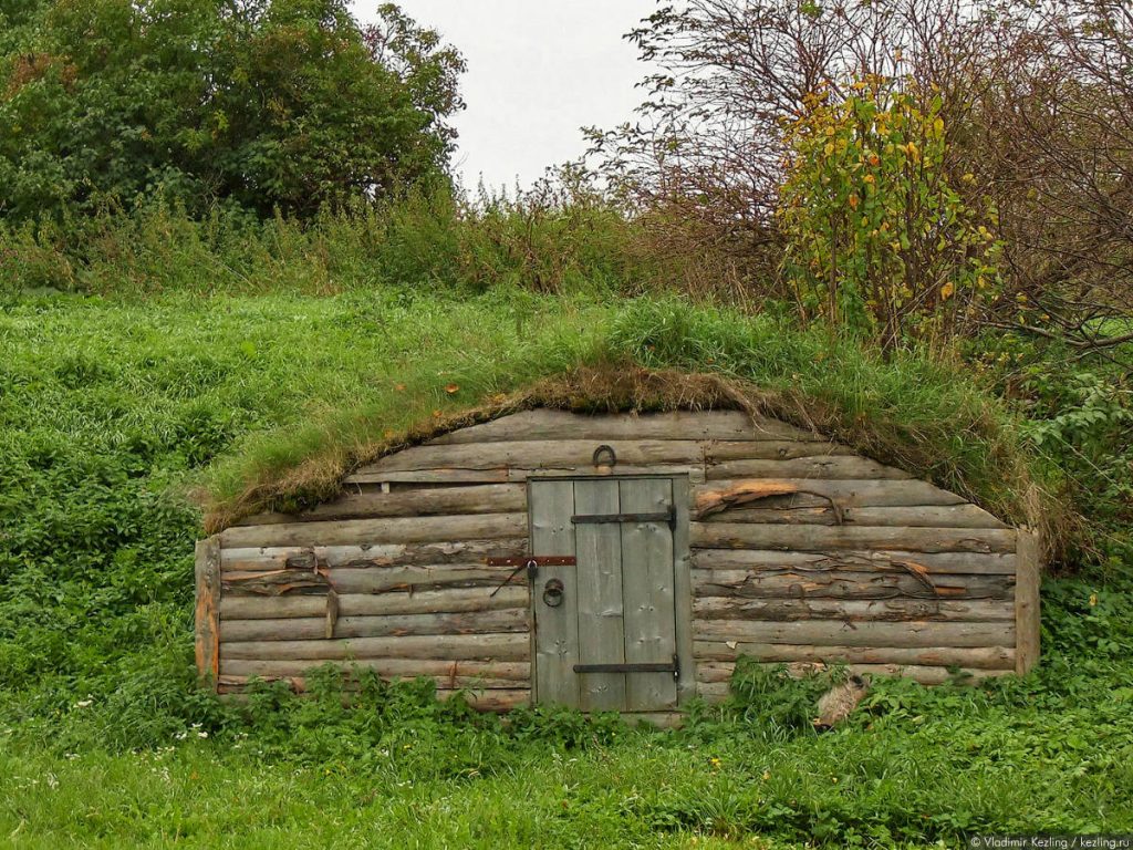 Некоторые хозяева погребов все же ставят двускатную деревянную крышу на строении. Нередко можно встретить наземный погреб, возведенный своими руками, который внешне выглядит как небольшой деревянный домик.