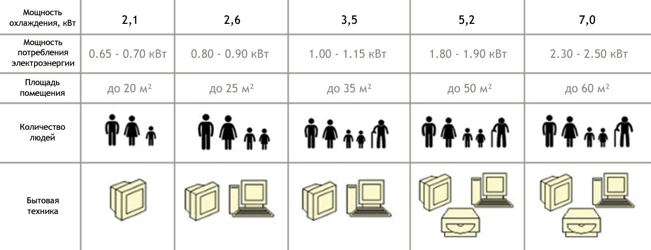 Выбор кондиционера по мощности охлаждения