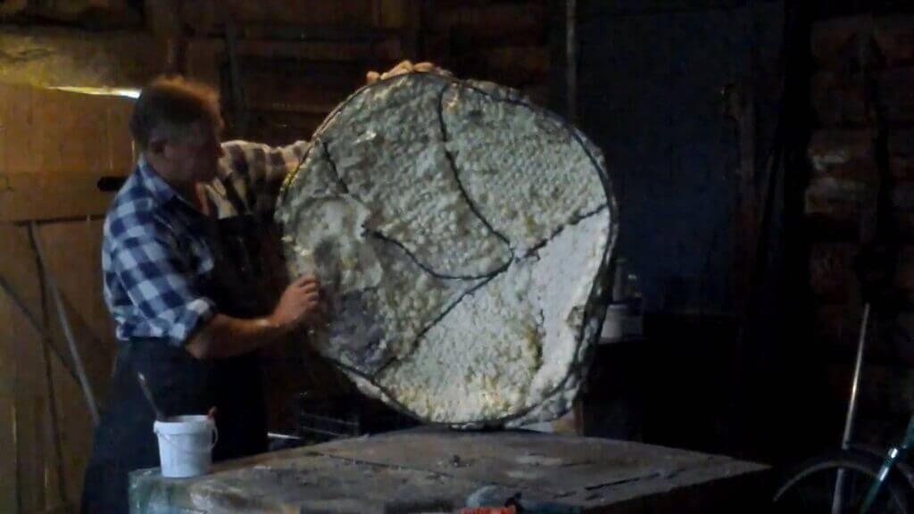 Будем делать имитацию известкового валуна. Всё наше сооружение крепится на металлическом каркасе, который сделан из проволоки катанка шестёрка (из неё ещё делают пружины). Делается контур произвольной формы: пользуясь плоскогубцами, сгибаем проволоку, придавая ей вид камня. Делаем контур, и присоединяем к нему дополнительные грани. Всё это сваривается, или скрепляется той же проволокой при помощи плоскогубцев. Всё это обтягивается металлической сеткой. Фракция не так важна, так как основной несущий элемент — строительная монтажная пена. Она наносится на металлический каркас. Затем необходимо ждать, пока пена затвердеет.