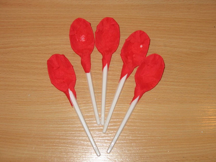 Цветные пластиковые ложки или обычные ложки и салфетки. Из этого будут создаваться бутоны.