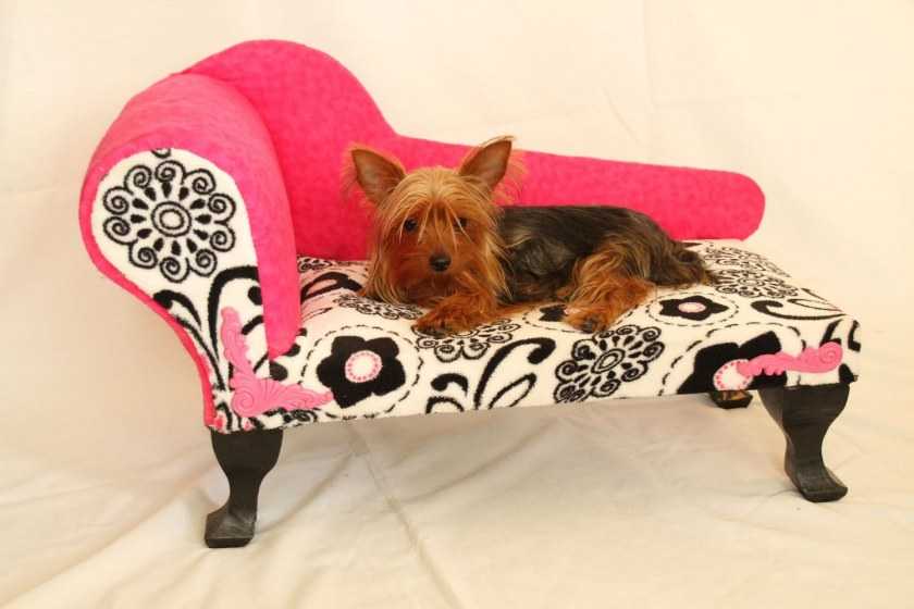 - собаки мелких пород весят немного, редко возникает проблема: основа продавливается. Чаще хозяева сталкиваются с другой неприятностью: питомец грызет декор на лежанке и подушке. Если животное портит рюши, бахрому, кисти, помпоны, то не стоит украшать бортики и мягкую основу. Оптимальный вариант – ткань интересной расцветки.