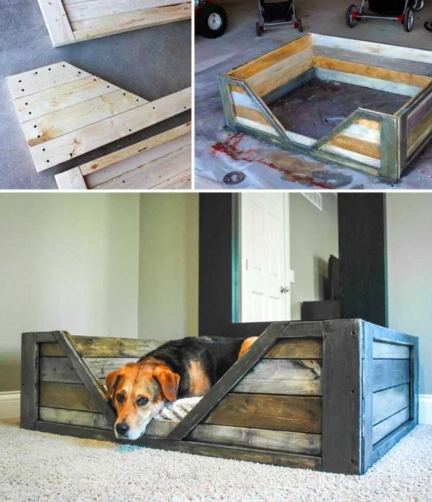 Если площадь дома, квартиры позволяет, у собаки есть целая комната или в гостиной пустует угол, можно сделать настоящий предмет мебели – спальное место на подставке.