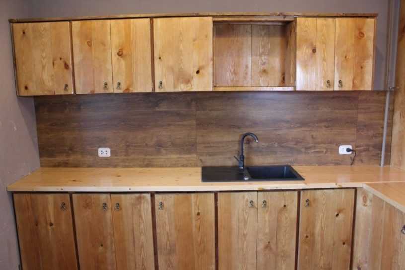 На видео показан вариант кухонного гарнитура, сделанный своими руками: