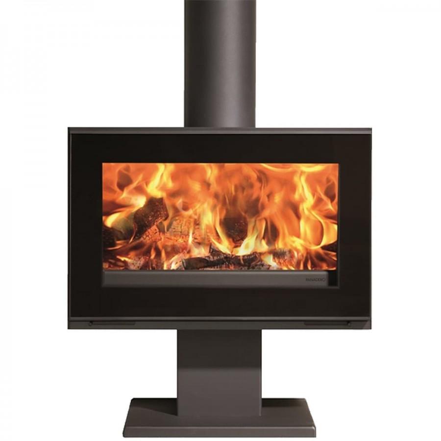 Дверь оборудовано стеклом большой площади, которое имеет систему самоочистки. Двойное запирание двери обеспечивает безопасность и герметичность камеры. Подключается к дымоходу диаметром 150 мм. Дровяная печь имеет устойчивое основание и предназначена для пристенной установки.