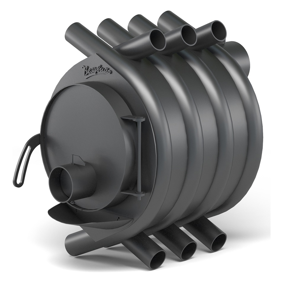 По периметру корпуса, изготовленного из котловой стали, привалены радиальные трубы, которые обеспечивают интенсивный теплообмен. Снизу засасывается холодный воздух, который нагревается и подаётся вверх, что помогает ускорить циркуляцию. Помещение быстро прогревается при небольших затратах топлива. На одной дровяной закладке отопительный прибор работает от 8 до 12 часов.