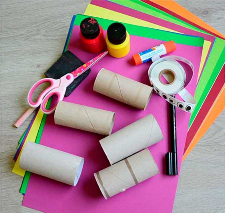 | Шаг 1 | Для начала покрасьте картонные втулки краской. Выберите те цвета, которые вам больше всего нравятся. |