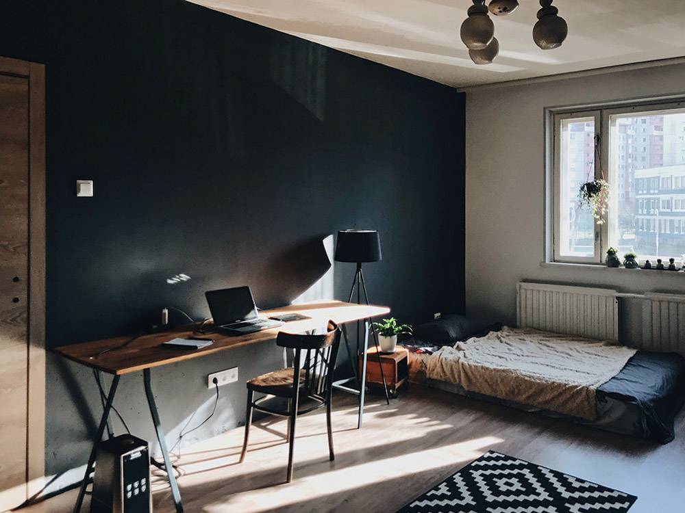 В целом ремонтом это назвать сложно. Я решил оставить в первозданном виде две плоскости стены, а остальные покрасить в белый и темно-серый цвета. На покраску ушло еще полдня, после чего мы расставили уже имеющийся декор, и комната заиграла по-новому. Кроме того, что появилась особая эстетика, так еще и пространство визуально стало казаться больше. На краску, грунтовку и малярный скотч я потратил около тысячи рублей.