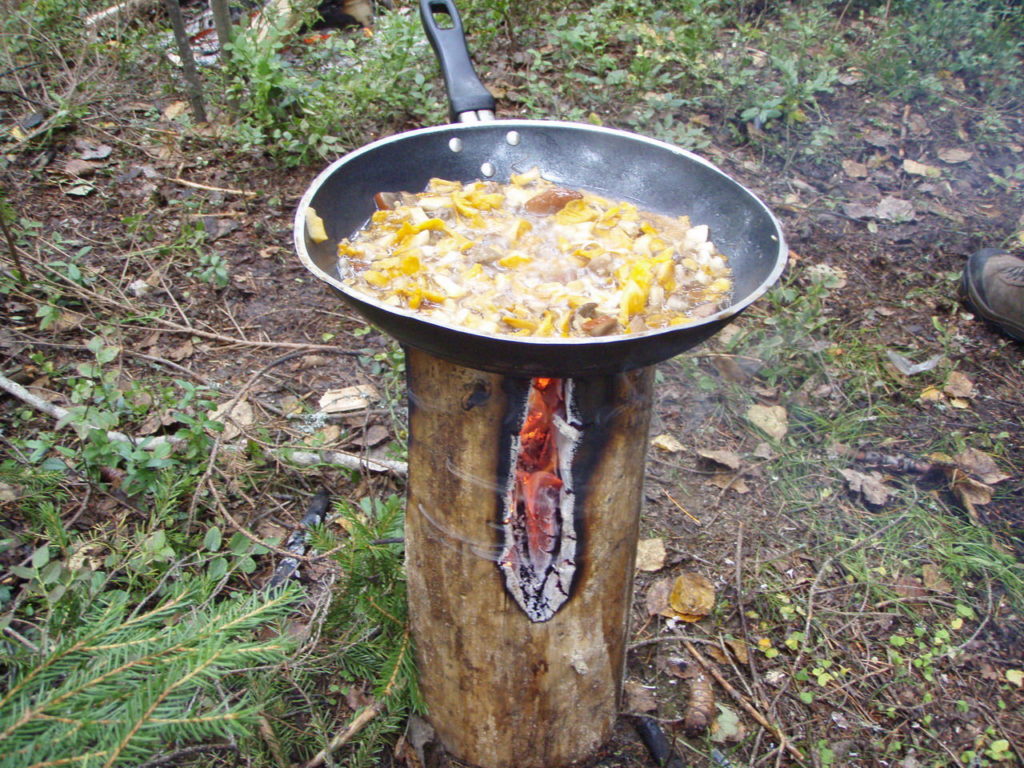 - Возможность использовать древесный примус в качестве подставки для посуды благодаря ровному срезу.