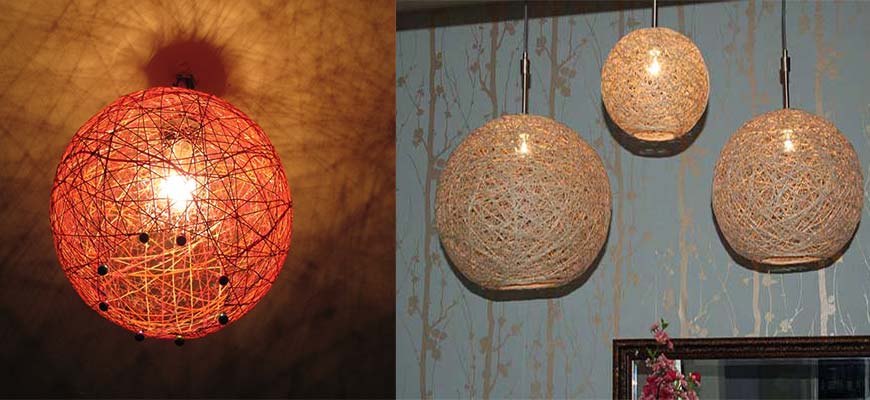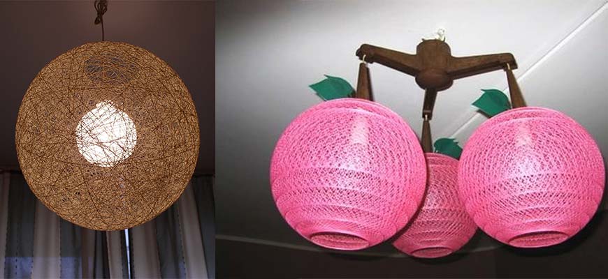 Светильник из шара и ниток является одним из самых популярных самодельных осветительных приборов. За основу берётся обычная нить. Шар можно изготовить буквально за 1 час.