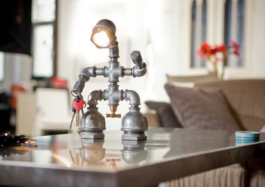 Элементы интерьера в данном стиле будут отличаться простотой и оригинальностью. Чем грубее и проще изготовлена конструкция, тем больше лофта. Когда это торшер, то подойдут трубы, лыжная палка, либо арматура с лампой и патроном.