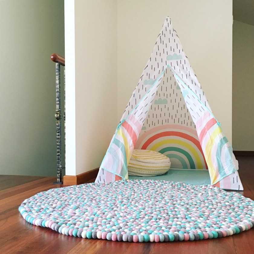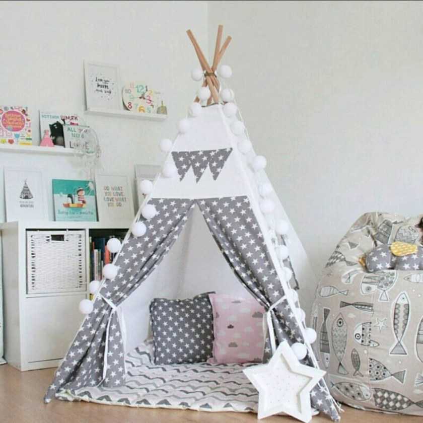 Вигвам для детей представляет собой симбиоз домашнего шалаша и палатки. Такая конструкция сразу полюбилась детям: она интересная, необычная и очень уютная. Родители также оценят такое дополнение интерьера, потому что комната сразу станет намного эстетичнее.