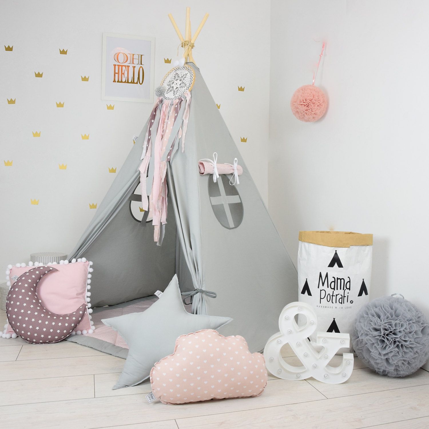 Эта модель встречается чаще всего. Она имеет стандартную форму вигвама. Дополнительно конструкция может иметь аксессуары — подушки в тон, помпоны, текстильные гирлянды и т.д.