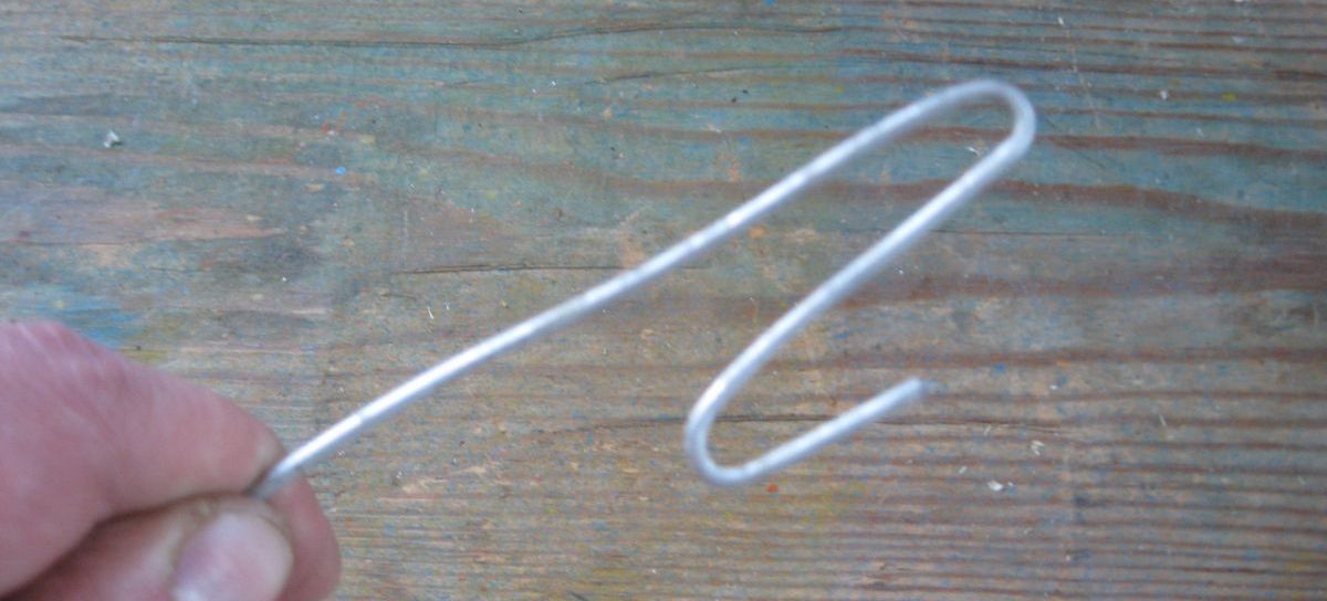 - Второй конец скрутите, и зафиксируйте, придав ему форму кольца. Оно позволит управлять тросиком, перемещая его вперед, назад и вокруг оси. Чтобы было удобно работать с приспособлением, можно соорудить дополнительно к кольцу рукоятку.