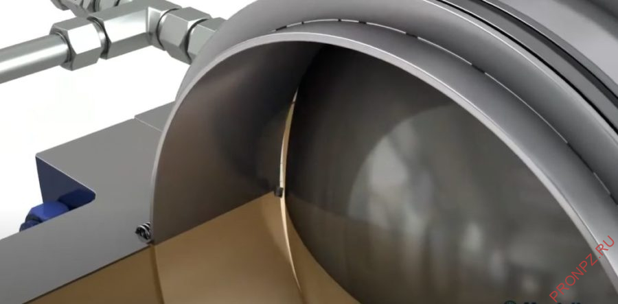 Чтобы перекрыть поступление жидкости необходимо повернуть шток на 90о, который соединен затвором. Когда создается давление с потоком жидкости, то гладкая поверхность сферы начинает прижиматься к кольцам, которые выполнены из гладкого полимерного материала, перекрывая поступление.