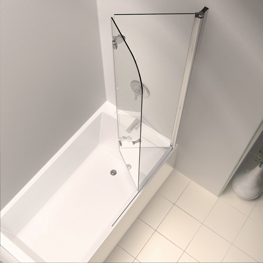 Складные стеклянные шторки отличаются компактностью. Стеклянная складная шторка состоит из нескольких панелей, которые крепятся на шарниры. Складная стеклянная шторка может «растягиваться» как гармошка. Складные шторки подходят как для классических угольных ванн, так и для угловых. Стеклянные складные шторки – отличное решение для маленькой ванной комнаты.