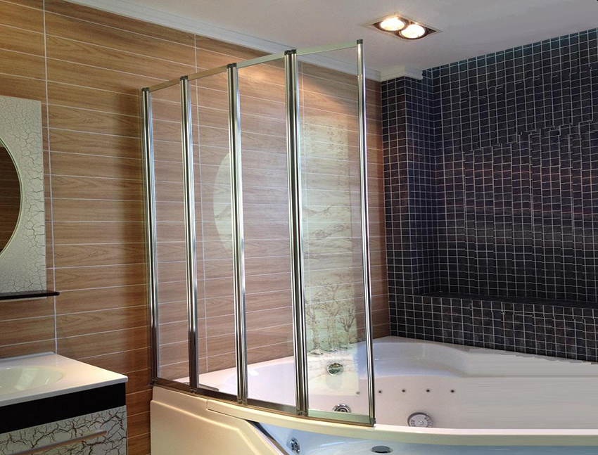 - Стеклянные шторки-гармошки рекомендованы для угловых чаш.