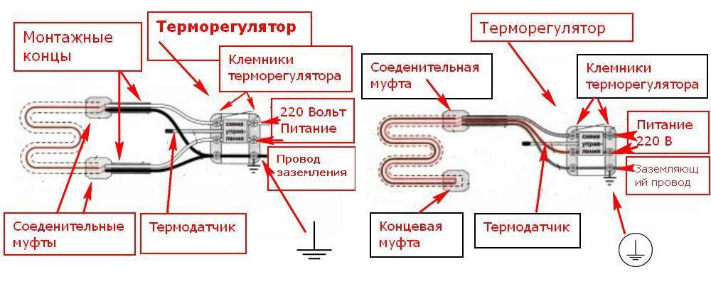 Резистивный кабель можно подключать как с одного, так и двух концов — всё зависит от количества нагревательных жил