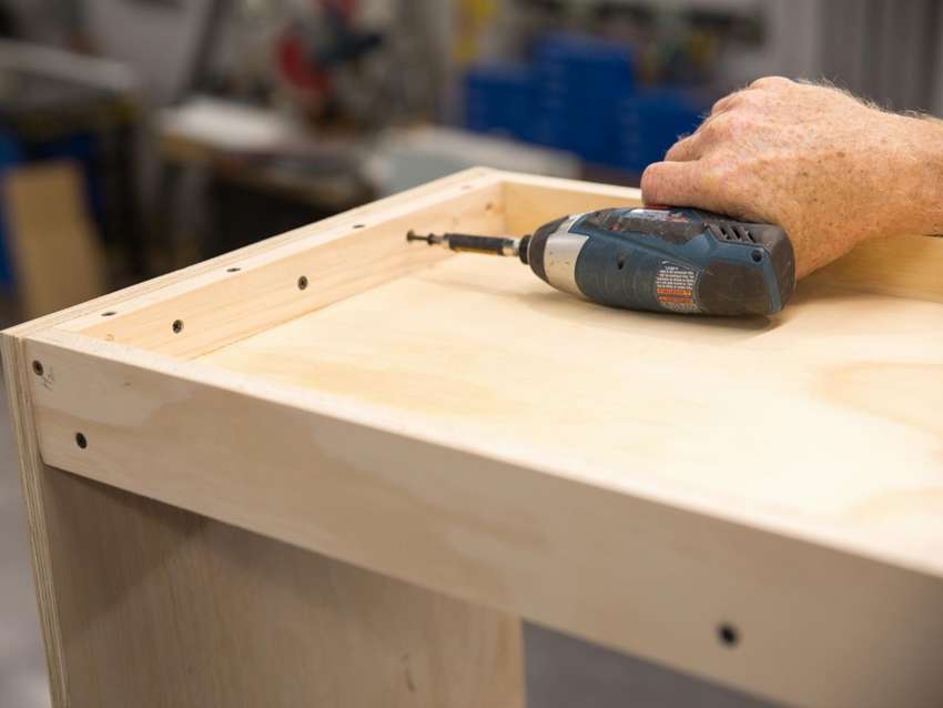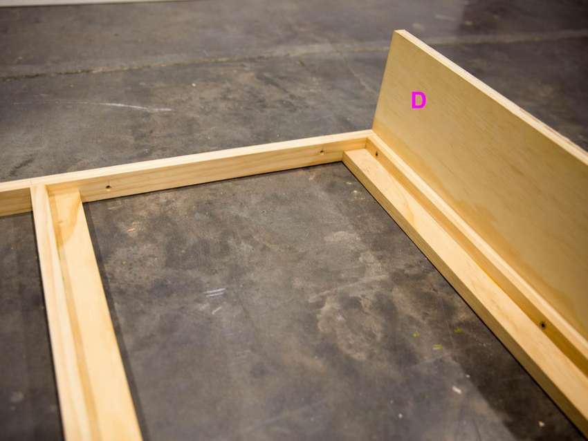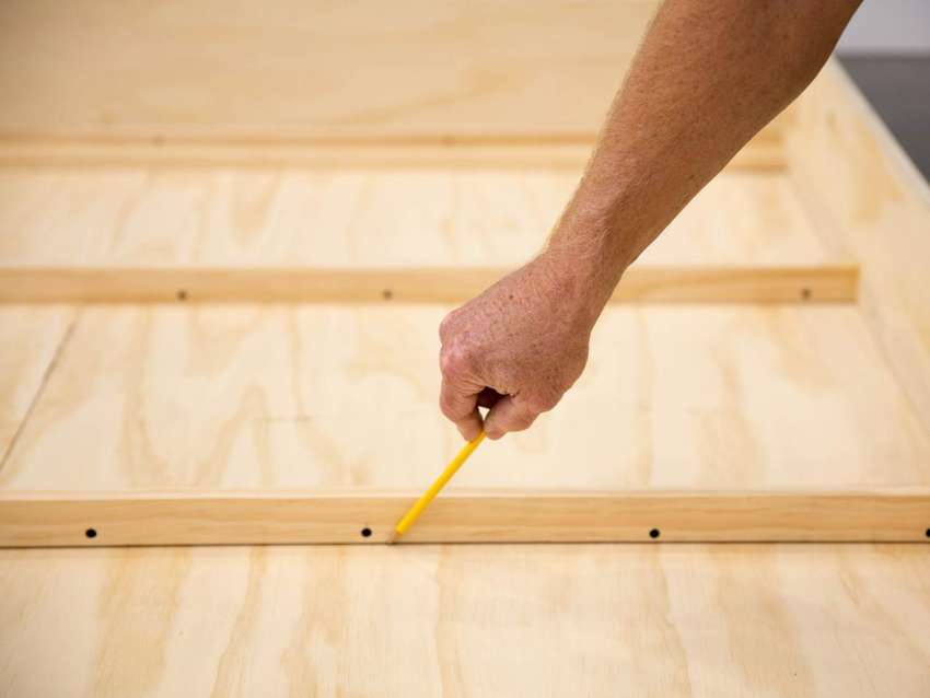 - Поместите деревянную планку по периметру, основание для наматрасника. Закрепите его по бокам саморезами.