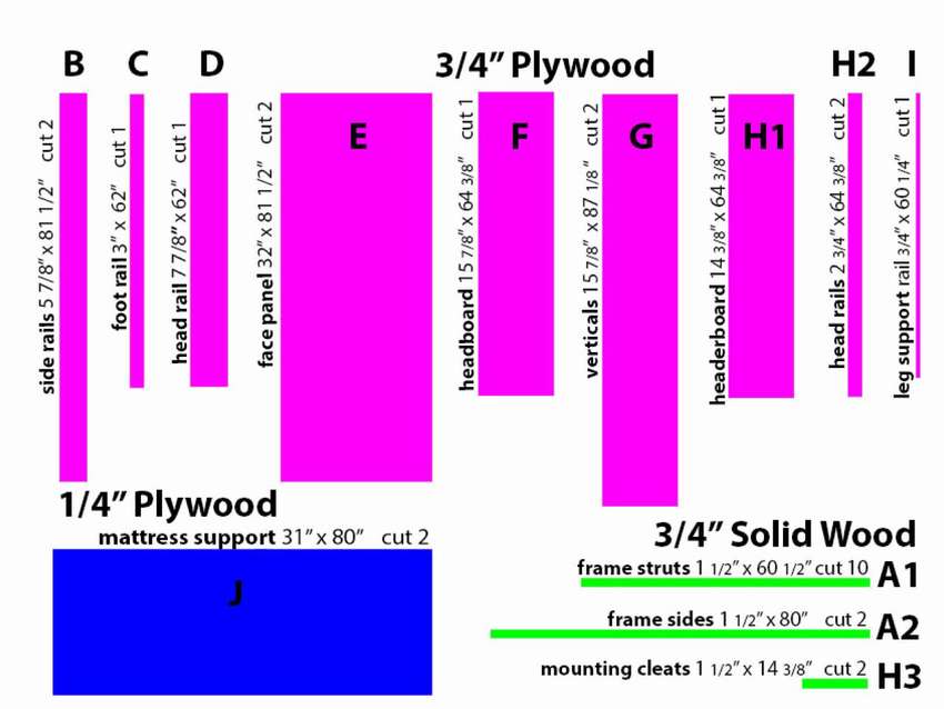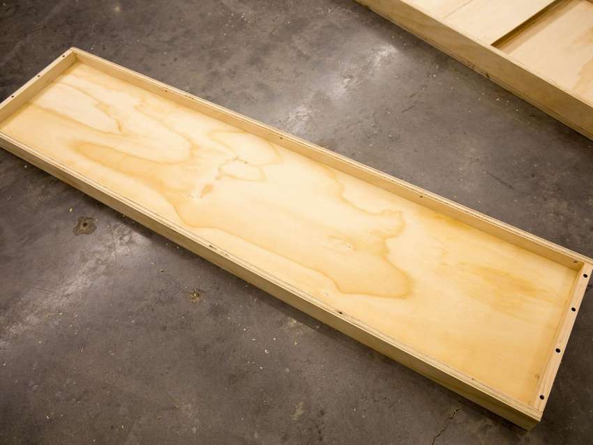 Сборка встроенной кровати в шкаф-купе начинается с каркаса. Его основные части — это 4 стороны и основание. Последний будет основным элементом кровати, а в собранной конструкции — стенкой шкафа. Для удобства использования нужно выбрать матрас подходящего размера: шириной 150 мм и длиной на 400 мм ниже основания. Следовательно: