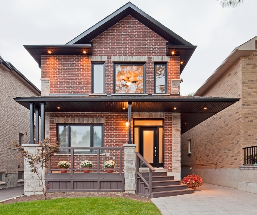 Фронтон из кирпича подходит для любой конфигурации крыши.