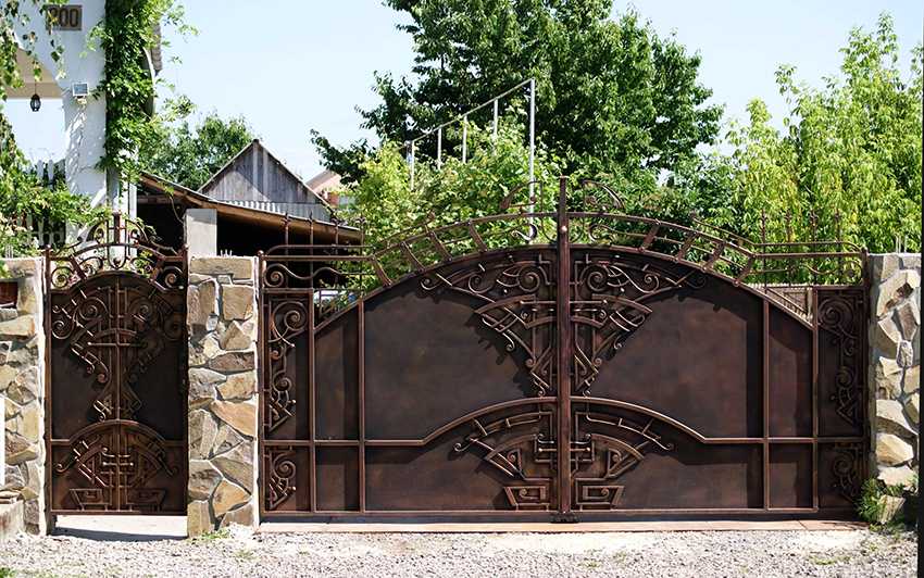 Сплошные ворота. Из названия становится понятно, что такие ворота состоят из непрерывного металлического полотна. Безусловно, и в этом случае они содержат кованые узоры. Данная конструкция очень напоминает обычный сплошной забор, однако выглядит более эффектно.