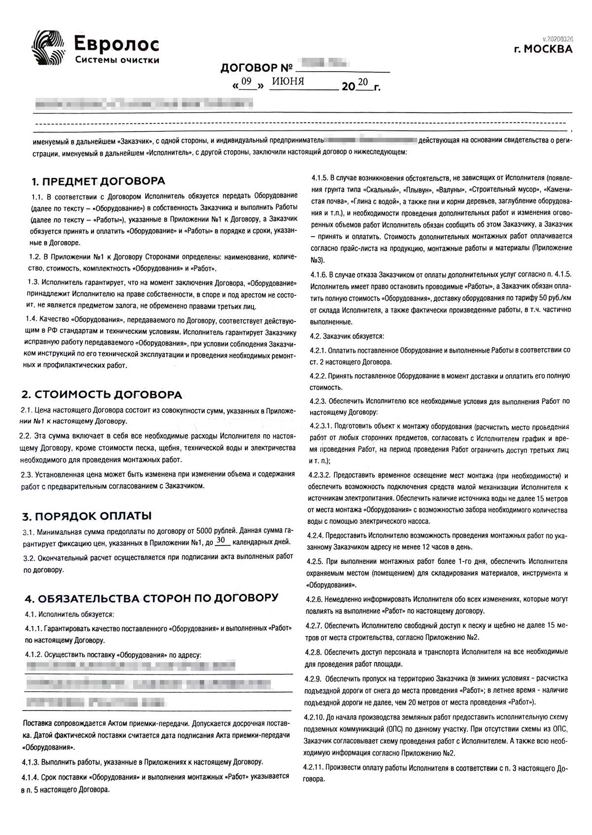 Песок для работ я заказал сам с доставкой из ближайшего карьера. Вода к участку тоже уже была подведена, поэтому с этим проблем не возникло. Все остальные работы и материалы входили в стоимость стандартного договора.
