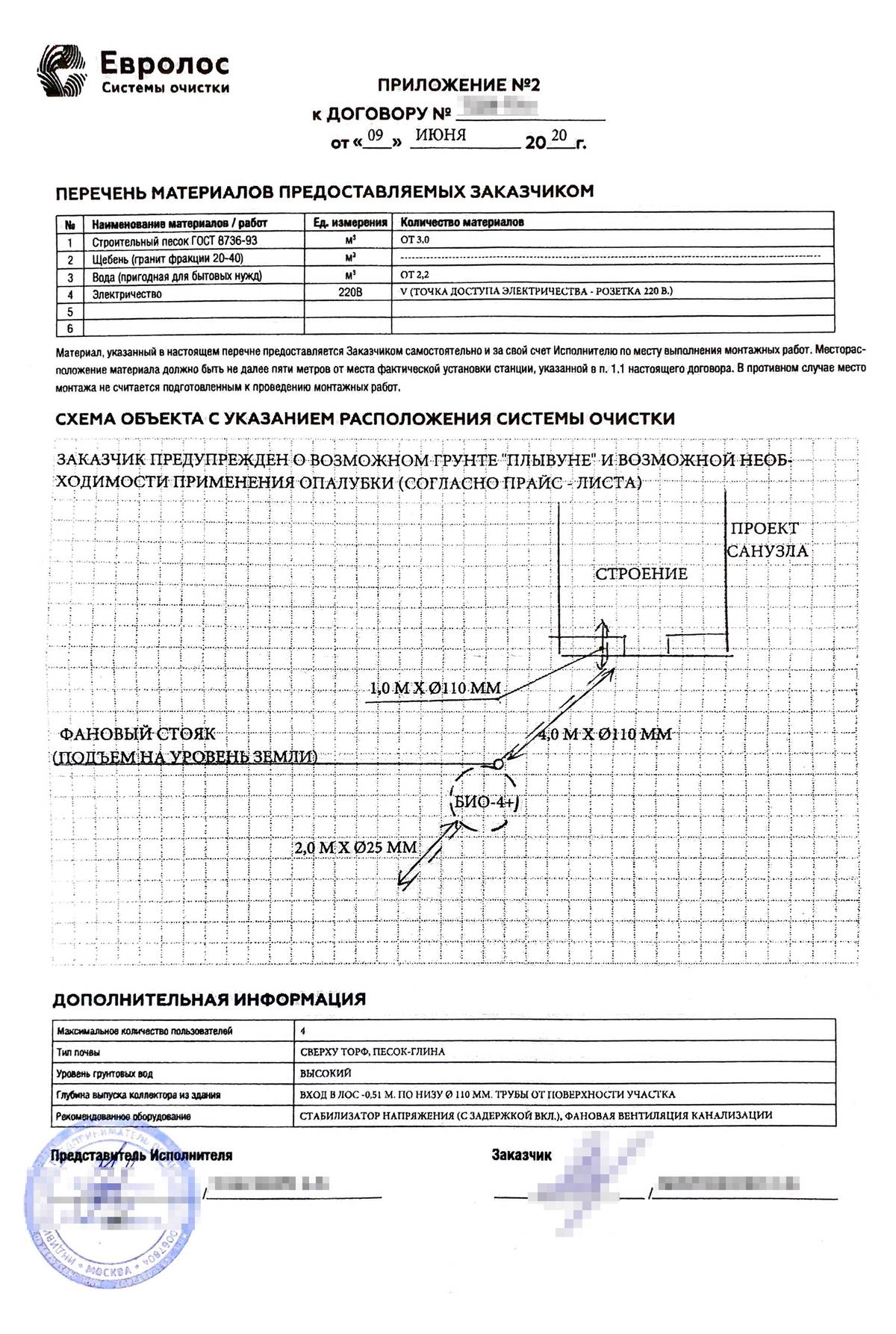 На первом ко мне выехал инженер компании. Он обследовал участок и составил проект. Мы с ним выбрали оптимальное место для установки с учетом всех факторов: дистанции до колодца и дома, уклона участка и пр. Также решили, куда отводить очищенную воду.
