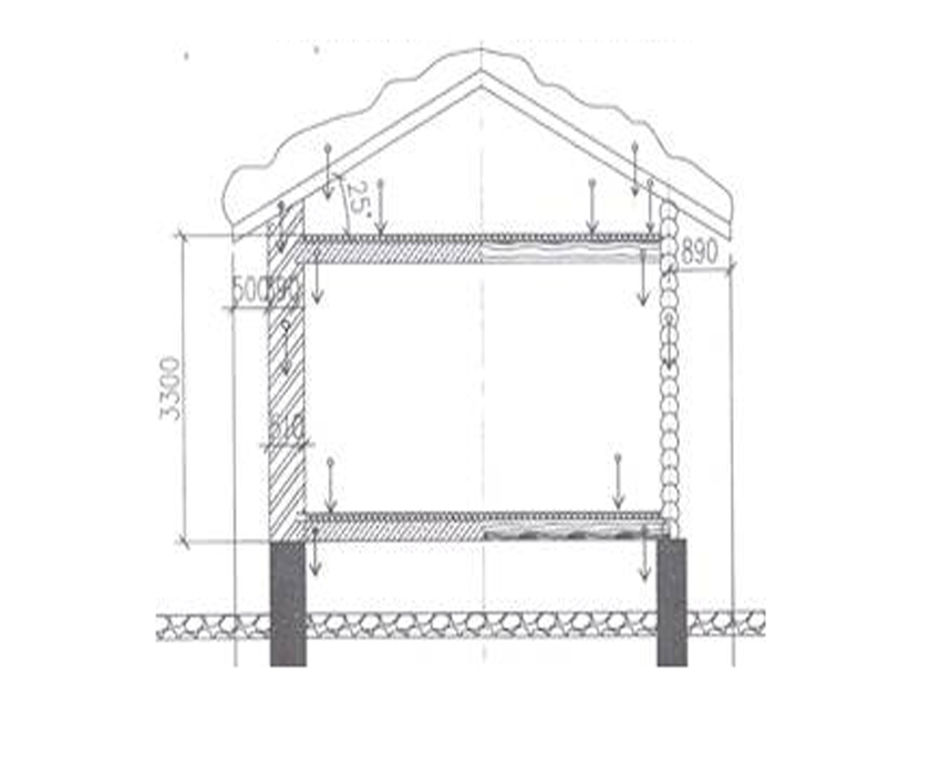 Вес дома определяется как сумма веса всех входящих в него частей – перекрытий, перегородок, стен, стропильной системы, кровельного материала, переменной нагрузка от снега и ветра, массы отделки снаружи и внутри строения, а также предполагаемой к установке в доме мебели и бытовой техники. Предположим, что посчитав все искомые величины, получили общую массу строения, равную 124 тонны.