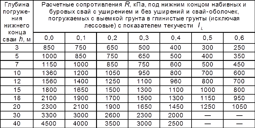 Табличные данные, полученные опытным путем, дают возможность оценить сопротивляемость того или иного грунта, то есть его несущую способность.