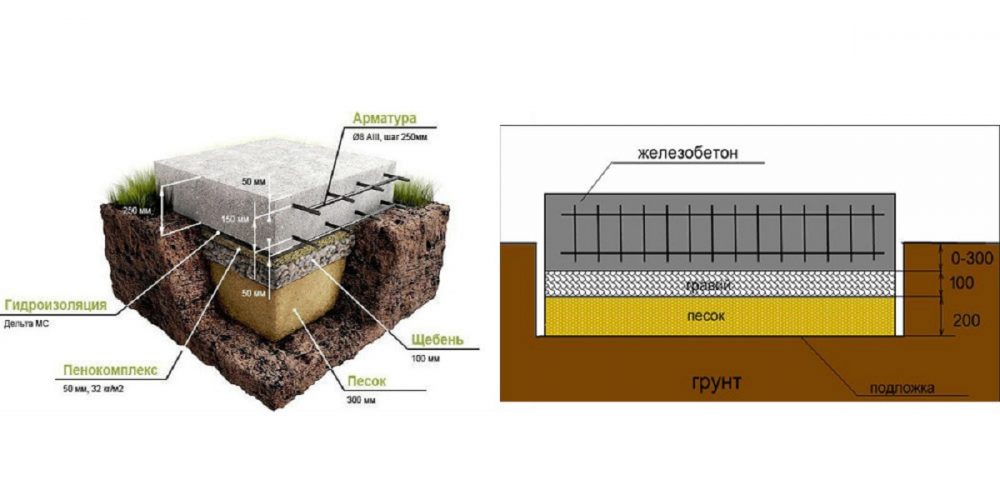 Железобетонная подушка снижает нагрузку на грунт и позволяет утеплить его
