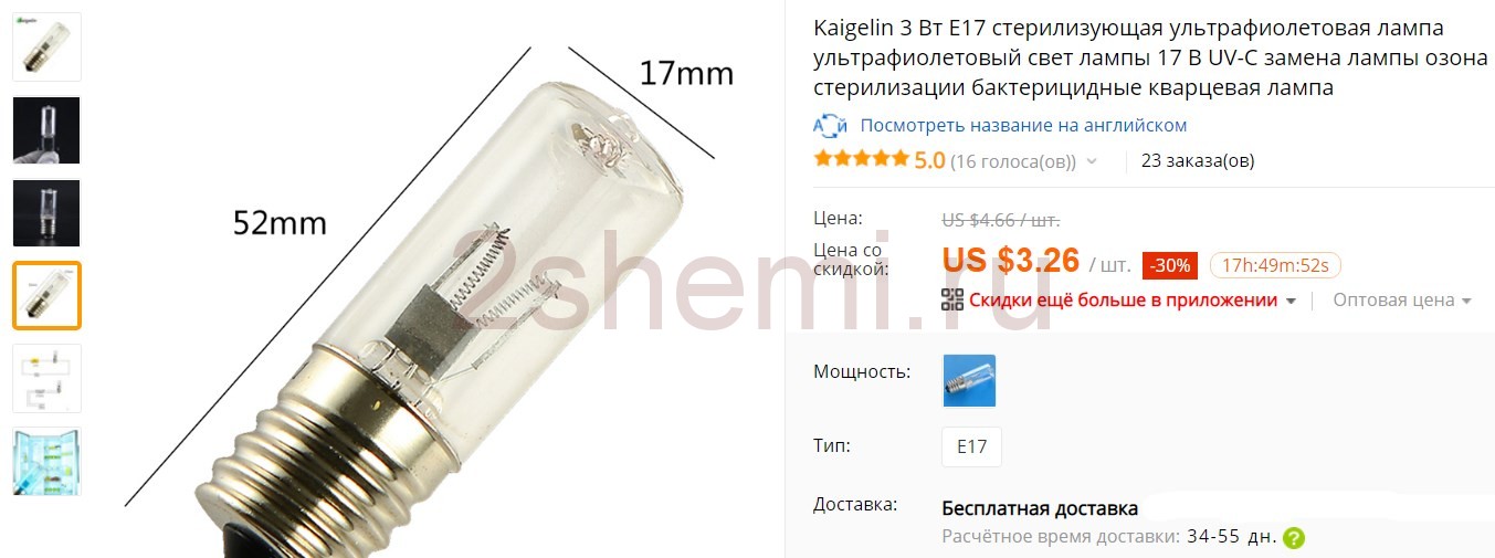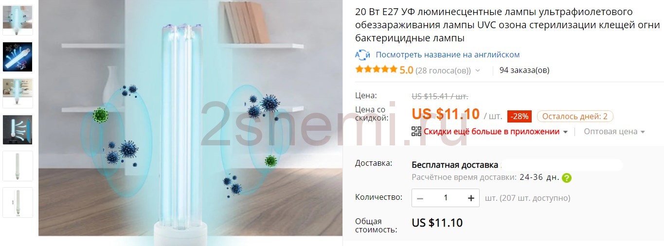 Решено было заказать и проверить две недорогие модели китайских ламп. Небольшая лампа UV-C E17 на 3W и люминесцентная UV-C CCFL 20W. Вот как выглядят тестовые образцы в интернет магазине: