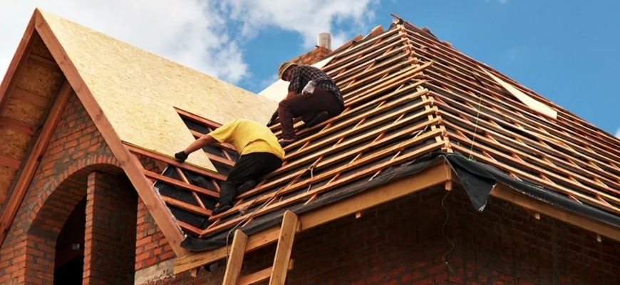 Затем выполняется обрешетка из деревянных брусков. Для придания строению высокого комфорта, поверх обрешетки укладывается пароизоляционный, утеплительный материал. Слои паро- и теплоизоляции надежно фиксируются метизами для герметичности. В завершение выполняется обшивка кровли отделочным материалом.