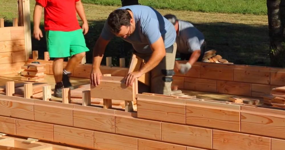 Деревянный кирпич — это, в сущности, деревянный брус небольшой длины, имеющий специальные замковые крепления. Монтаж стены из таких кирпичей не требует высокой квалификации и занимает немного времени. Нет необходимости в дополнительных уплотнителях и герметиках.
