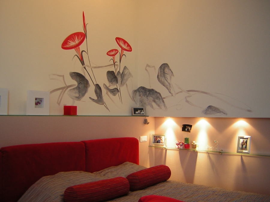 Нарисованные цветы на стене спальни