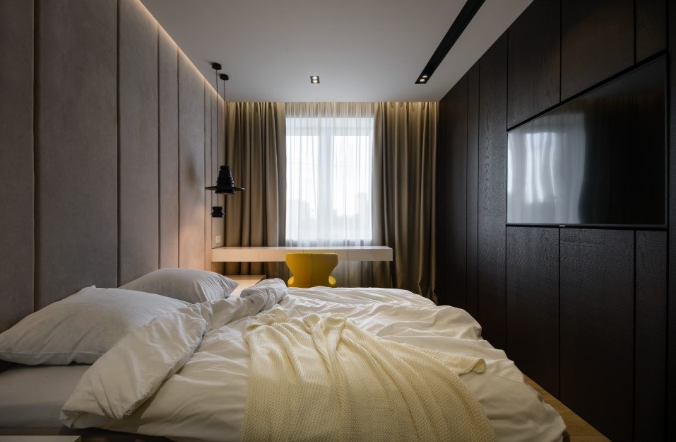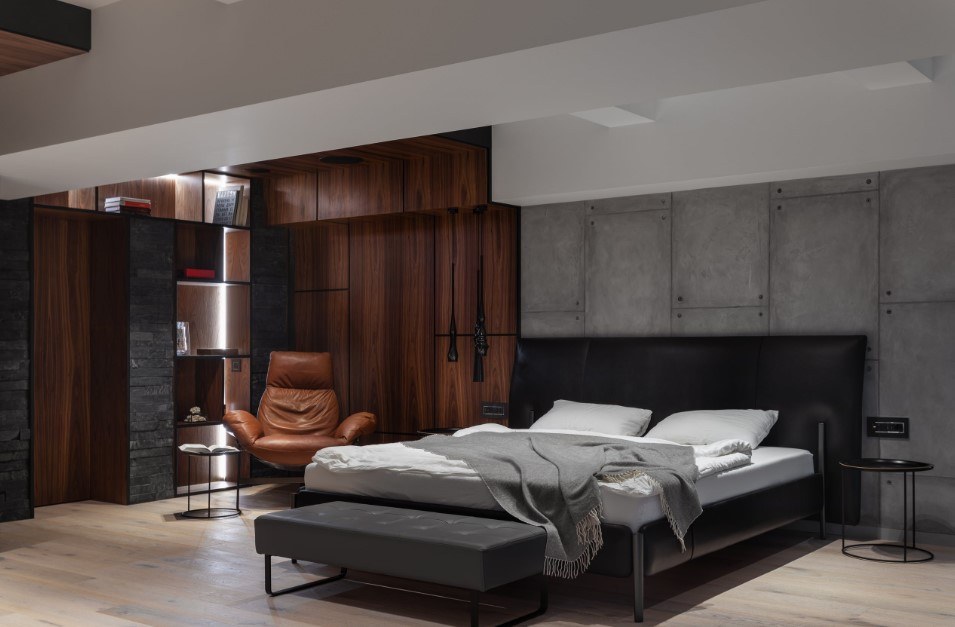 Практически, стекло делает интерьер строгим и холодным. Поэтому, особенно в спальне, стекло должно совмещаться с теплыми оттенками камня или дерева.