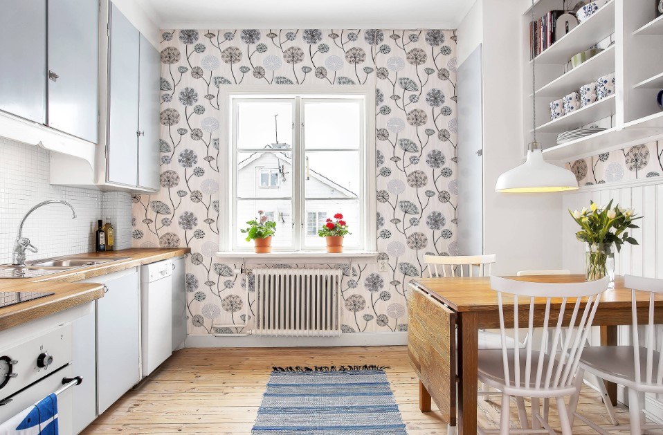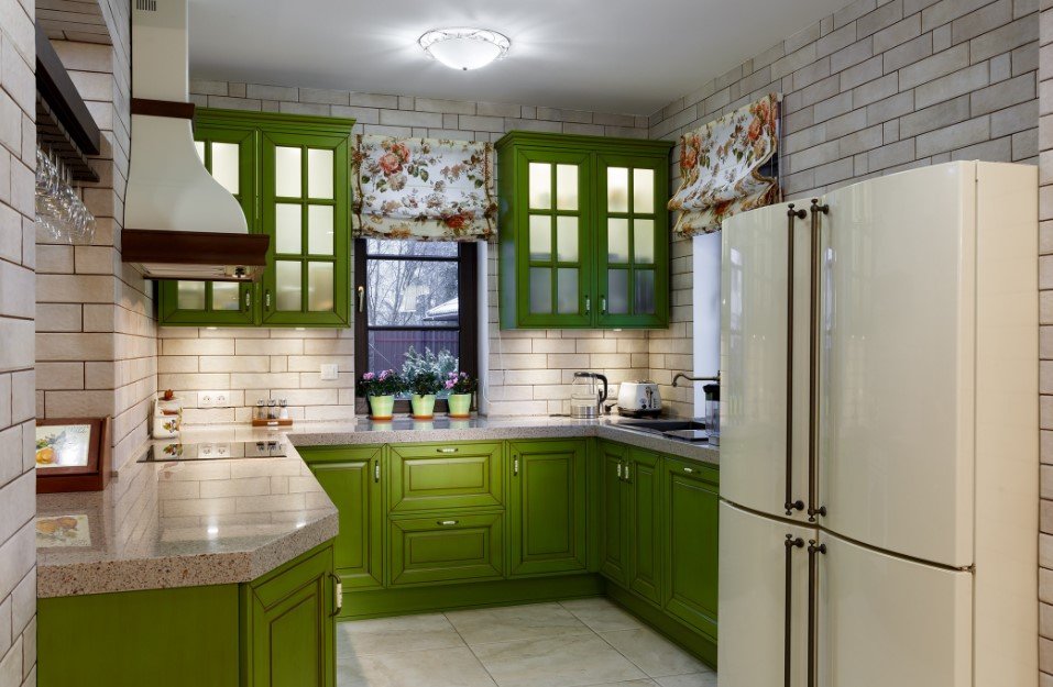Небольшую кухню стеклянные предметы мебели визуально увеличат. Разнообразная стеклянная утварь и аксессуары сделают кухню современной и стильной. В кухне желательно использовать стекло с рисунком или художественно обработанное: матовое, с травлением или гравировкой, резное. Такая обработка придает интерьеру изысканности.