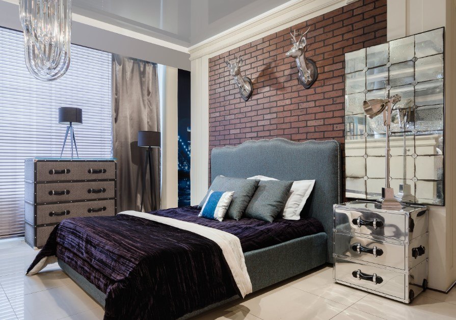 - В интерьере спальни могут быть и другие вещи из стекла. Например, статуэтки, фигурки или небольшие вазочки. Бра, люстра и стеклянный постер над кроватью добавят в дизайн воздушности. Для монтажа стеклянных картин нужно использовать круглые крепления. Потому что, такие крепления обеспечат стабильную и безопасную установку.