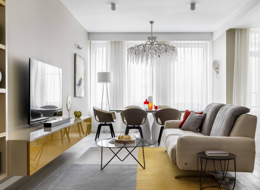 Для маленьких квартир стеклянные стенки – способ обеспечить ощущение легкости. В квартире-студии, при необходимости разделить зону гостиной и кухни используют все те же перегородки. Чтобы отделить ванную и спальню обращаются к матированным или тонированным разделителям. Это позволяет: