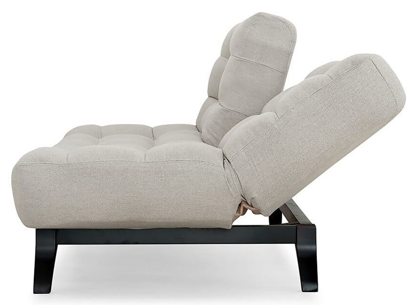 Это тоже модернизированная «книжка», которая, помимо положений «лёжа» и «сидя», имеет промежуточные варианты: «полулёжа» и «полусидя». Диван «клик-кляк» выполняется на металлокаркасе с деревянными латами, которые при сильной нагрузке часто ломаются. Его лучше использовать в детской или для редких ночёвок гостей.