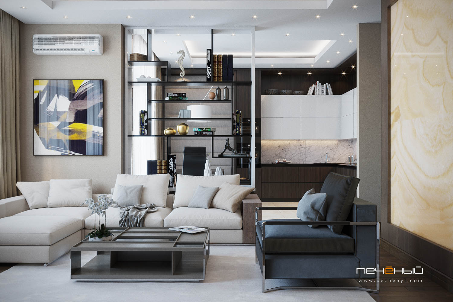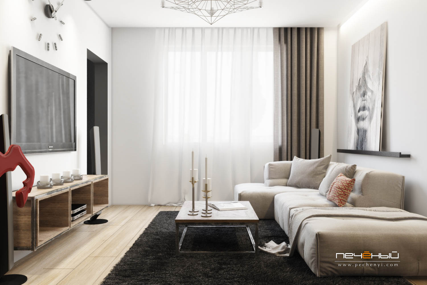 А вот красивый дизайн квартиры в современном стиле. Большой размер комнаты тут сыграл на руку, ведь отличительные черты этого направления: простор, обилие света и воздуха
