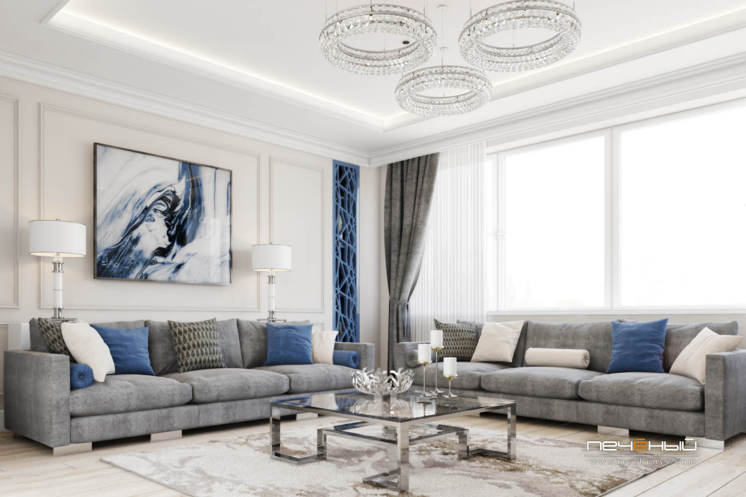 Современные элементы декора добавляют индивидуальности в проект гостиной