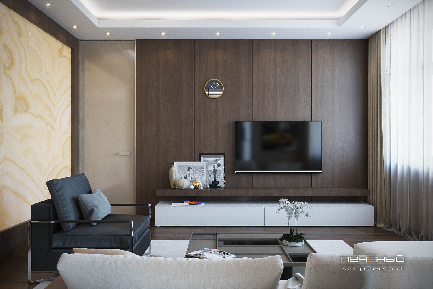 В зоне, где расположен телевизор, нет необходимости в ярком свете, здесь необходимо выбирать приглушённый свет.