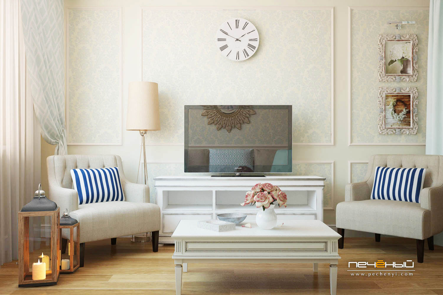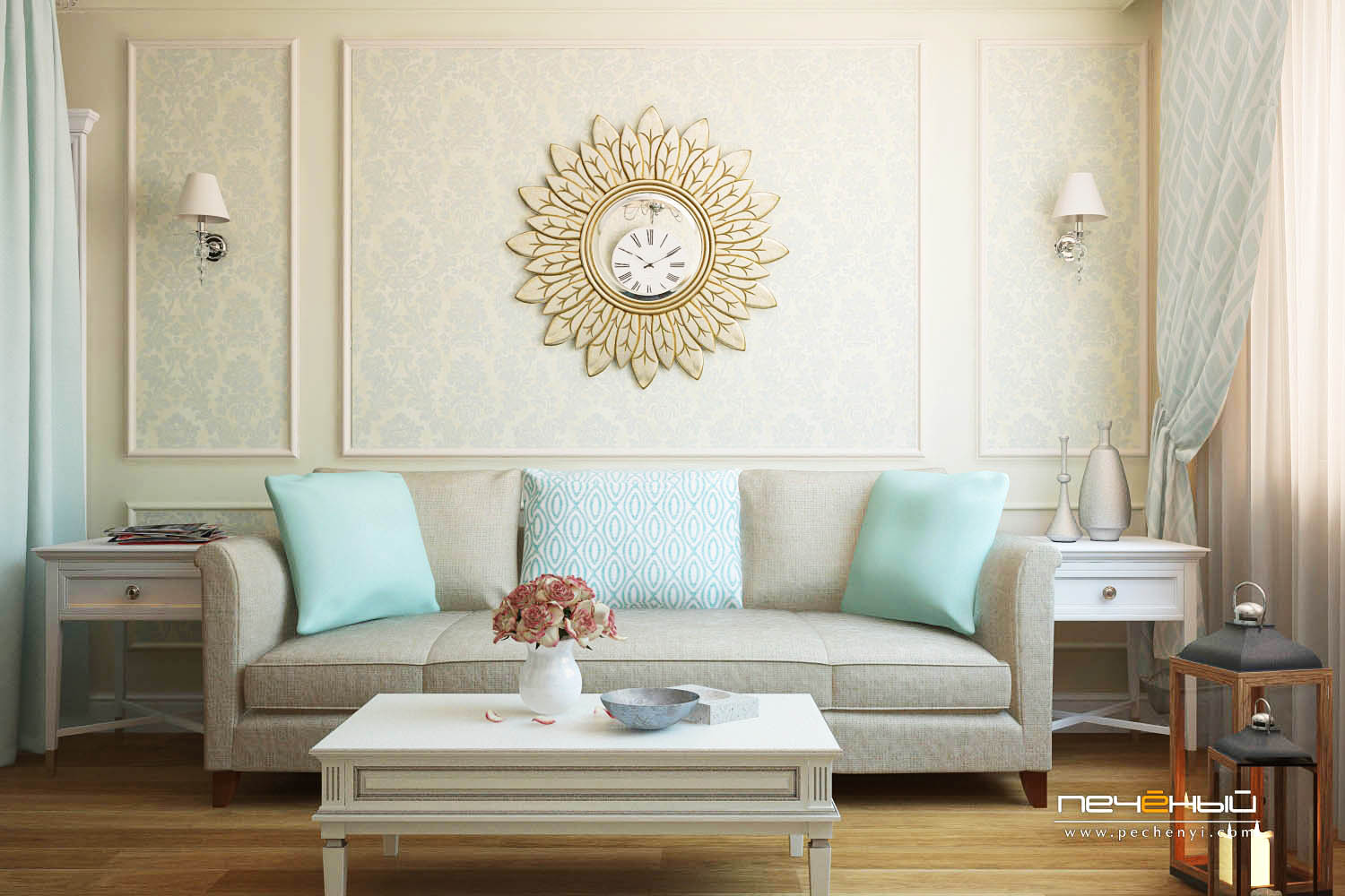 Рекомендуем обратить внимание на светлые теплые тона. Они сделают гостиную еще более уютной