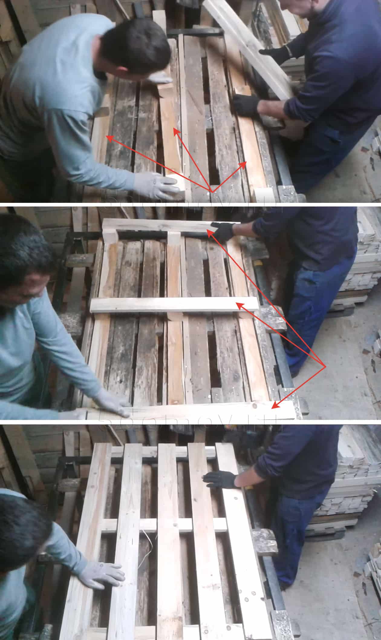 Для существенной экономии все необходимые работы можно проделать самостоятельно. Так, сосновые доски не подвержены гниению, устойчивы к температурным перепадам и не боятся влаги, по сравнению с другими породами дерева. Для изготовления поддона понадобятся брусья 50х50 мм и сами доски 25х105 мм, отвертка, шуруповерт и немного свободного времени. Для большей надежности рекомендуется делать расстояние между досками не более 10 см. В качестве креплений используются саморезы, которые вкручиваются при помощи отвертки и шуруповерта. В детскую достаточно и одноместной кровати. При создании многоуровневой конструкции, понадобится порядка шести поддонов евро размера.