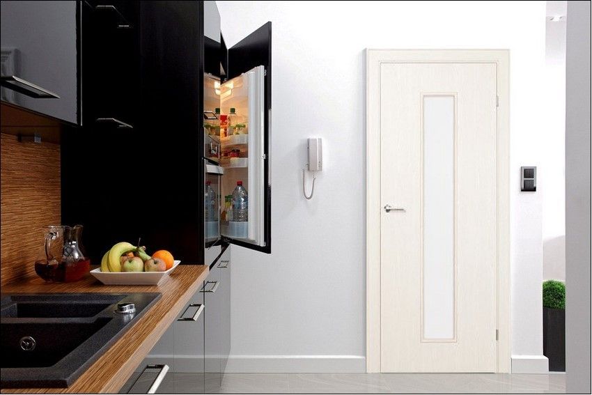 С осторожностью следует выбирать модель для кухни, ванной комнаты. Лучше всех с влагой справятся двери с полимерными покрытиями – ПВХ, экошпон