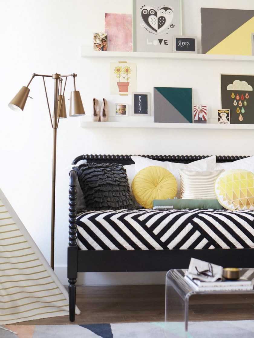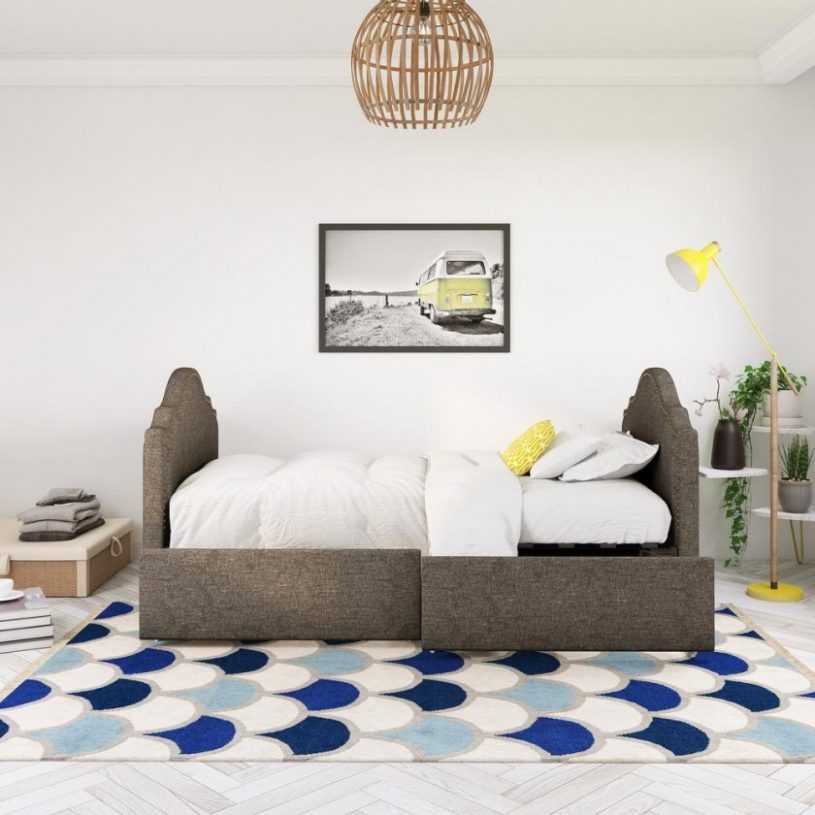 Кушетки ставят и в детские комнаты — как правило, в игровые зоны. Детские кушетки снабжают выдвижными и выкатными ящиками для хранения игрушек.