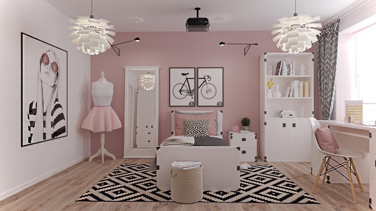 Обычно мебель для маленьких девочек выбирают светлую, с изображениями сказочных героев или цветов. Удобный вариант кровати для небольшой комнаты – на подиуме, в котором предусмотрены ящики для хранения постельного белья, подушек, матрасов и других предметов. Для школьницы понадобится удобный компьютерный стол, шкаф для учебников и тетрадей.