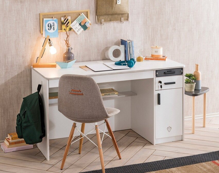 Размеры, форма письменного стола — это только основа. Действительно комфортным будет только функциональное рабочее место, поэтому позаботьтесь, чтобы выбранная модель была с ящиками, в которых удобно хранить школьные принадлежности (под столешницей, по бокам с одной или обеих сторон), а также расположенной в нижней части полкой, на которую можно поставить портфель, удобной подставкой для ног.